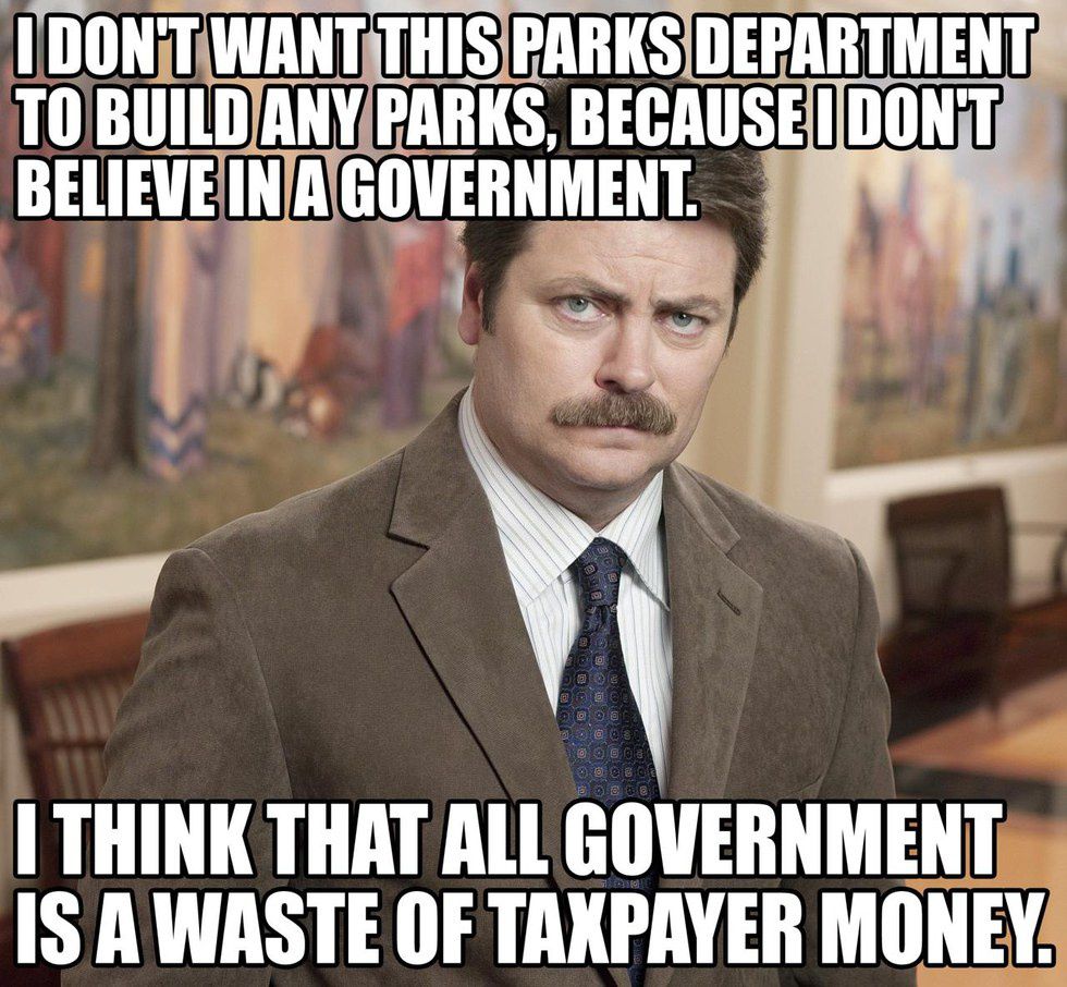 Everyone has thought this at least once, no matter how big a supporter of government they seem to be. It takes a man like Ron Swanson to have the guts to declare it.