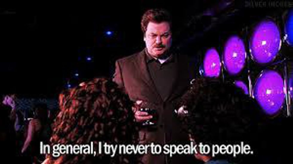Basically every introvert ever. But then again, when the situation calls for it, conversation sometimes cannot be avoided.