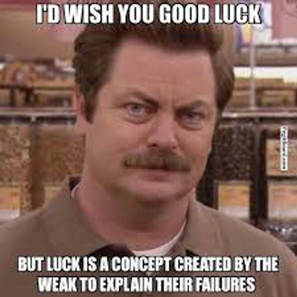 We all know that luck doesn't truly exist. Ron just said what we all were thinking. Real winners work hard; luck has nothing to do with it.