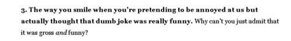 3. The way you smile when you're pretending to be annoyed at us but actually thought that dumb joke was really funny.