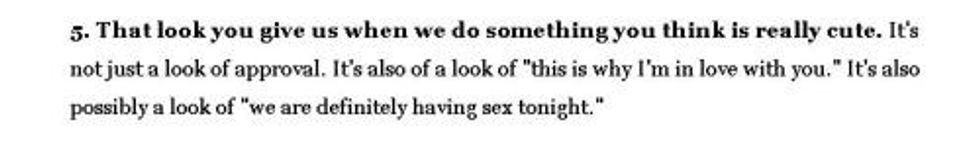 Not going to lie, I had to reach out to a female friend to explain in depth what this look is. She says she thinks it’s a very “subtle” look. Hmm, us men aren’t good with taking hints or “subtle” looks, this is why women get angry at us, that, or they’re hungry. True: 1 False: 4