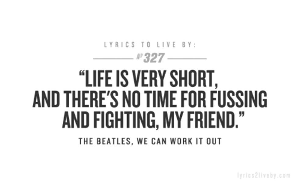 With all the chaos going on in the world, who better to calm our minds than The Beatles. Their lyrics gave people hope and spread a little love in the world, when it really needed it. I think we need some love now more than ever. Here are some of their lyrics that I believe the world needs to hear (they're pretty self-explanatory):