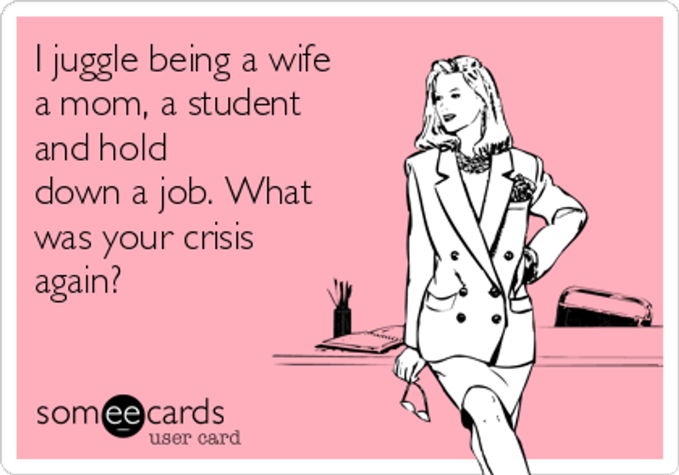 8. When you identify with all of the other college students like this, but then you realize that--oh wait, I lost my kid in the grocery store.