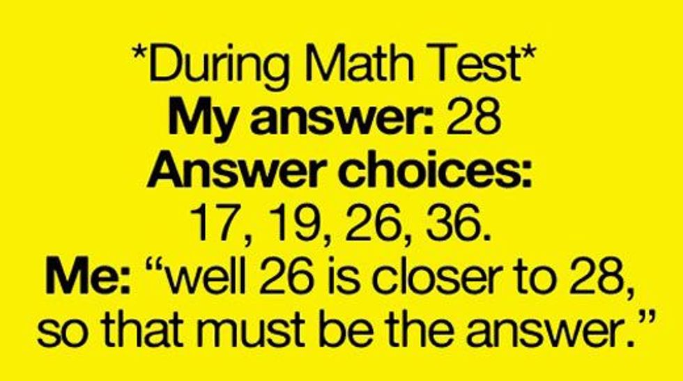 3. When you're pretty sure you did the problem right, but the answer isn't on the test so you settle for the closest answer.
