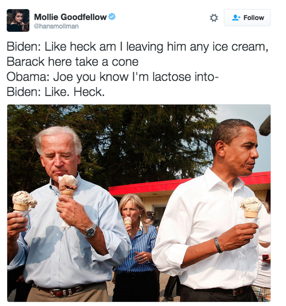 1)She's the Obama to my Biden, and she is lactose intolerant.