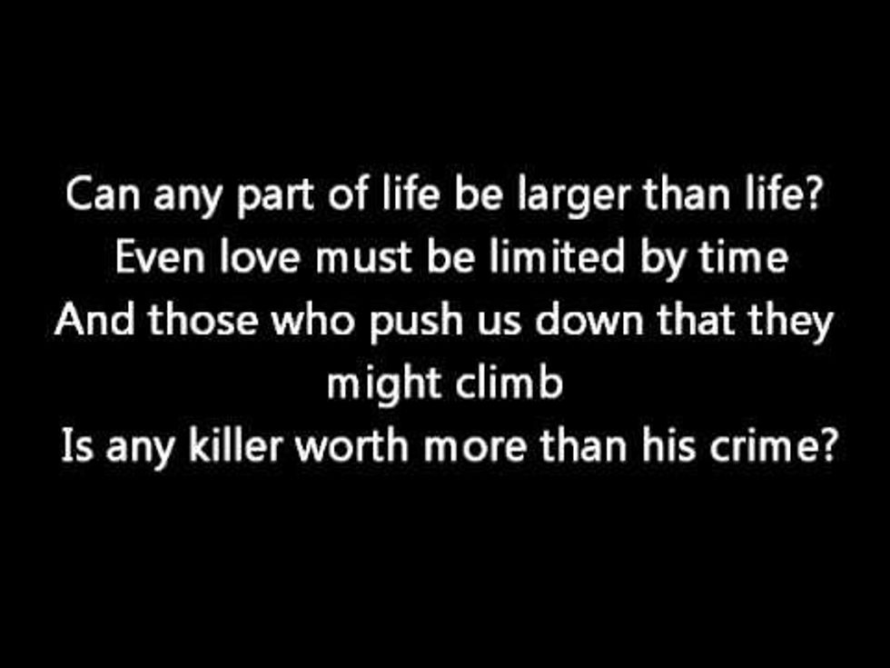 On the second track on Hold Your Fire, "Time Stand Still" reminds us all to appreciate each and every moment of our lives because we do not know how long we much longer we will be here. The song also serves as a retrospect of our past accomplishments and even failures. Most of us, including me, would appreciate it if time moved slower and, at certain points, freeze in order to run away from responsibilities and life for a limited time and just be in the moment. The instrumentation is fantastic and the lyrics are spot-on about our wishes regarding time. If you do not want to take the song too seriously, just watch the song's music video.