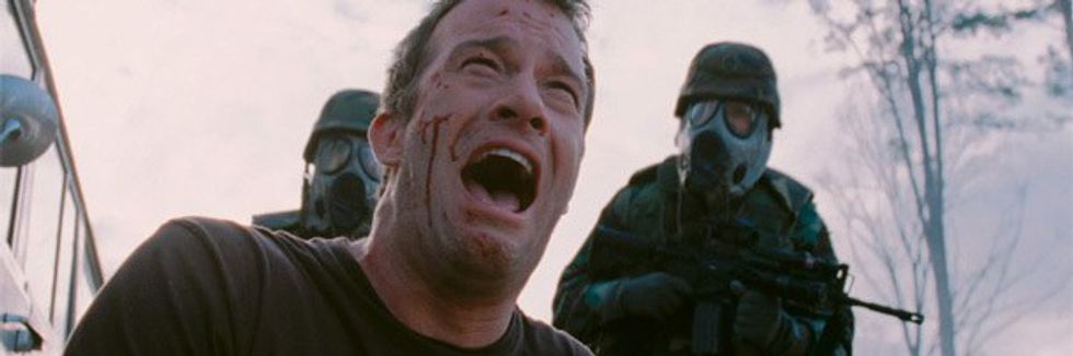 A group of people are trapped inside of a supermarket as monstrous creatures take over the city. The tension in the supermarket gets intense when everyone starts believing what an insane lady is preaching. She deduces that the creatures will keep killing people unless they sacrifice a child. The child's father is obviously not cool with that, so he and three other individuals escape the supermarket and drive away. After dodging several disgusting creatures, they decide they'd rather die peacefully than eaten alive. So, the father shoots everyone in the head, including his son. He runs out of bullets and exits the vehicle. He patiently waits for a creature to arrive and kill him.