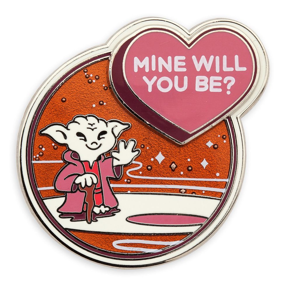 Any Star Wars fans out there? Well, if you’re reading this, can we agree that this might be the most adorable Valentine’s pin ever? From the colors, to Yoda’s pink robes (and his smile), and the “mine will you be” phrase, it just seems to scream “pick me, pick me, pick me!” at you.
