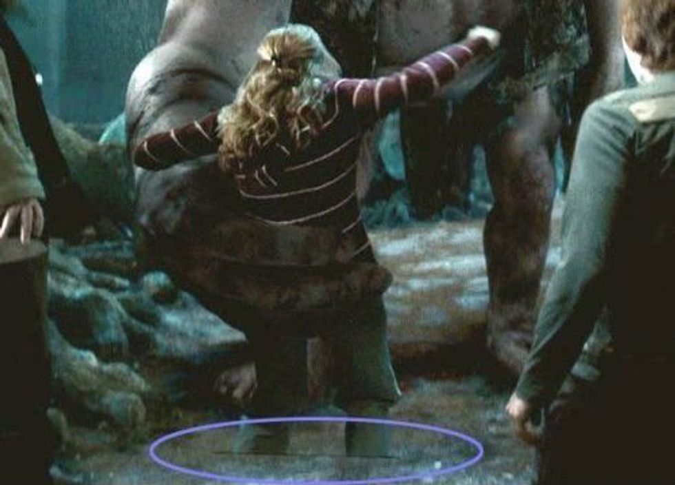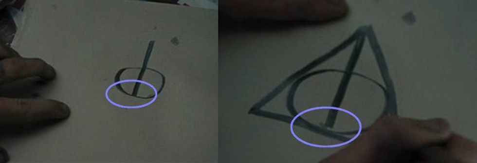 When Xenophilius draws the Deathly Hallows symbol, he draws the line to the bottom of the circle. When it cuts back to him drawing the triangle, the line is no longer touching the bottom of the circle.10. ('The Deathly Hallows, Part 2', 2011)