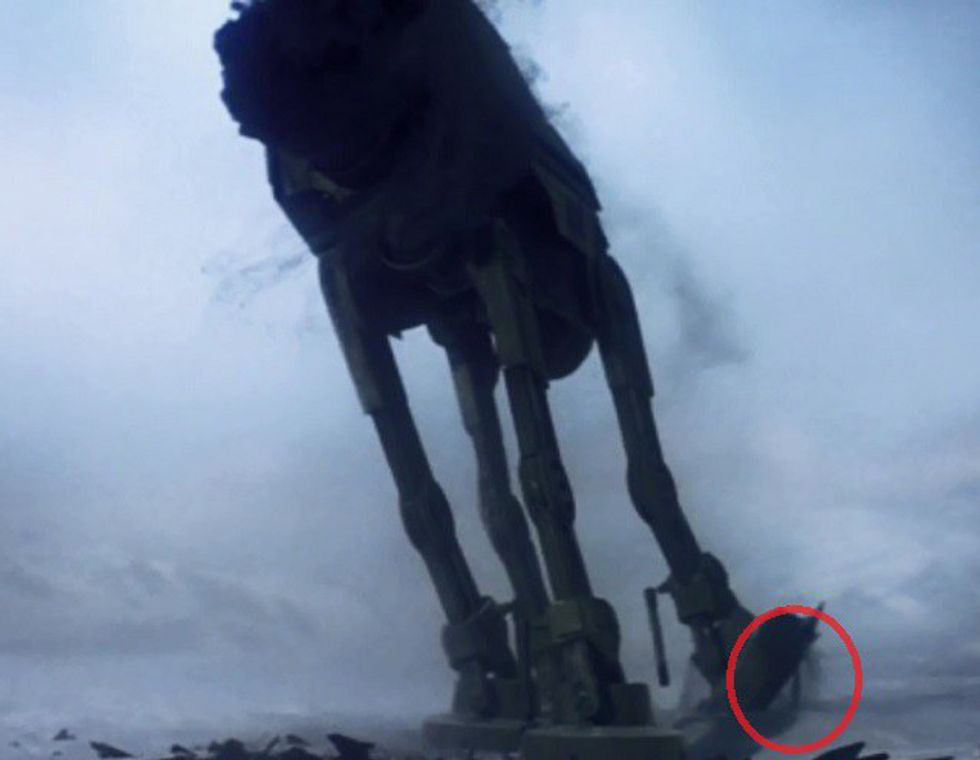 When Luke takes down an AT-AT, he apparently had some help. Once the giant AT-AT starts to fall, a stick is seen underneath its foot to help cause it topple over.