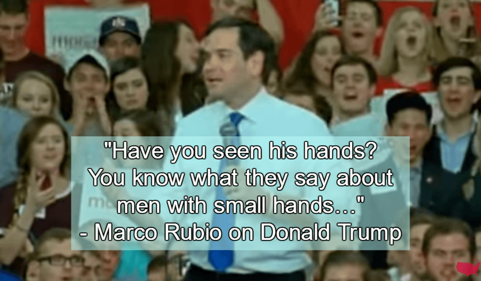 There is literally, nothing in the universe that we wanted to hear about less than Donald Trump's genitals, and yet, the GOP hopeful Marco Rubio made a sliding reference to