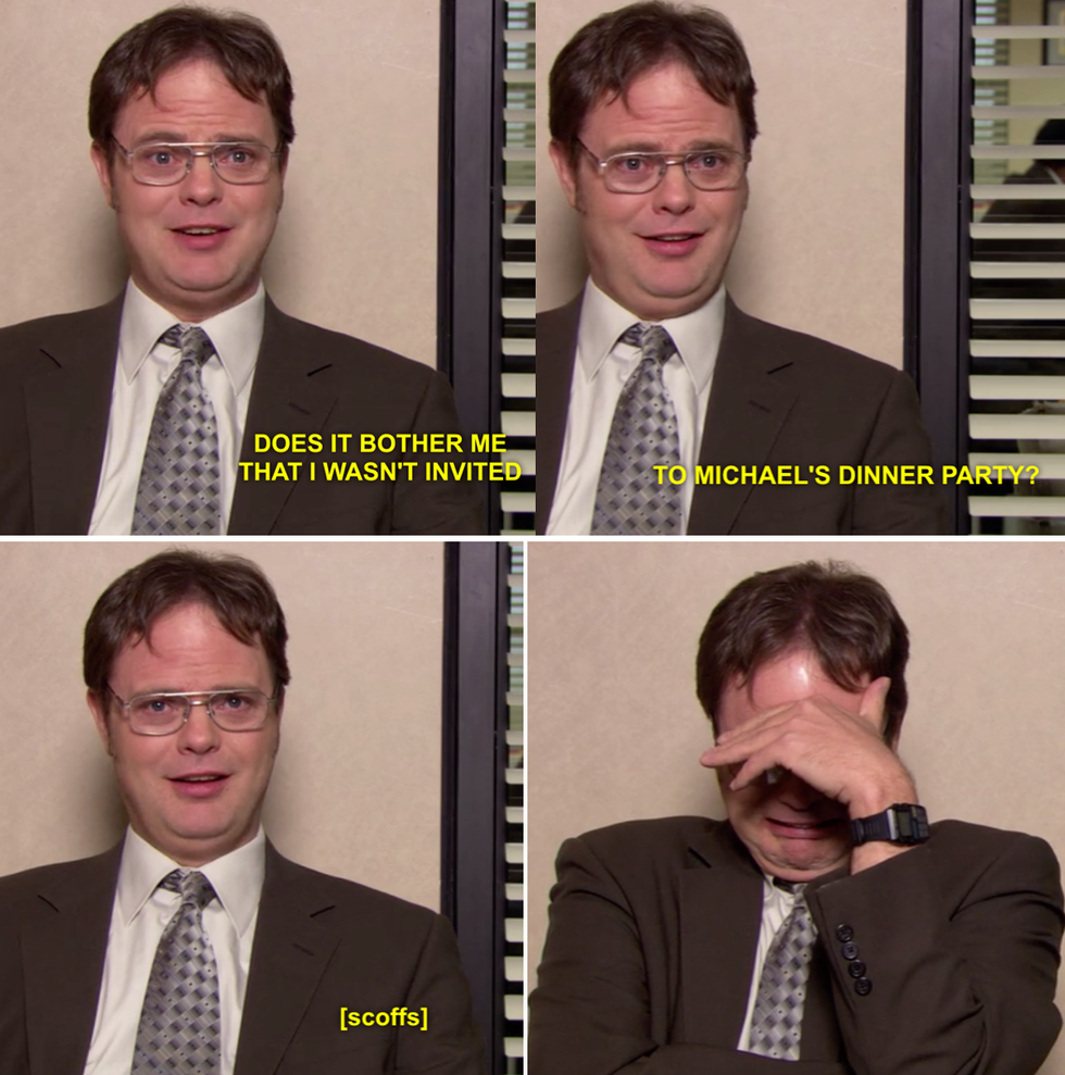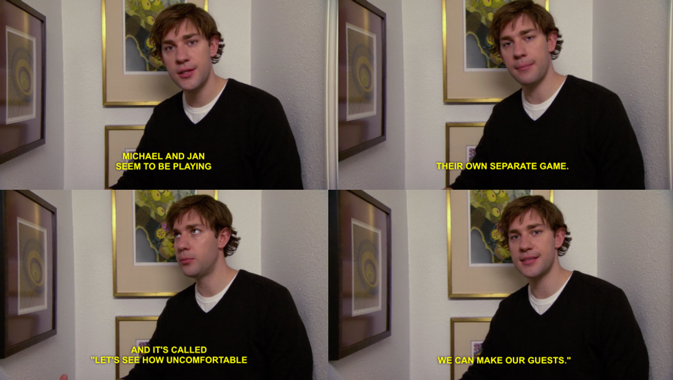One of the most watched and loved TV shows in America is definitely The Office. I would estimate that at least 80% of people in the United States have seen at least one episode or gif of The Office, whether they realized it or not. Personally, it's a favorite of mine and I have rewatched the entire series on multiple occasions. That being said, after many years of debate and analysis, I have determined episode 9 of season 4 "Dinner Party" is the best episode of The Office to ever air. It's the perfect mix of awkward and uncomfortable and hilarious and relatable. So, here are my top ten moments why "Dinner Party" is the best. (In order as they appear in the episode.)