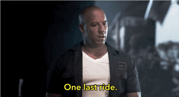“I used to say I live my life a quarter mile at a time and I think that's why we were brothers - because you did too. No matter where you are, whether it's a quarter mile away or half way across the world, you'll always be with me. And you'll always be my brother.” (Cue tears).