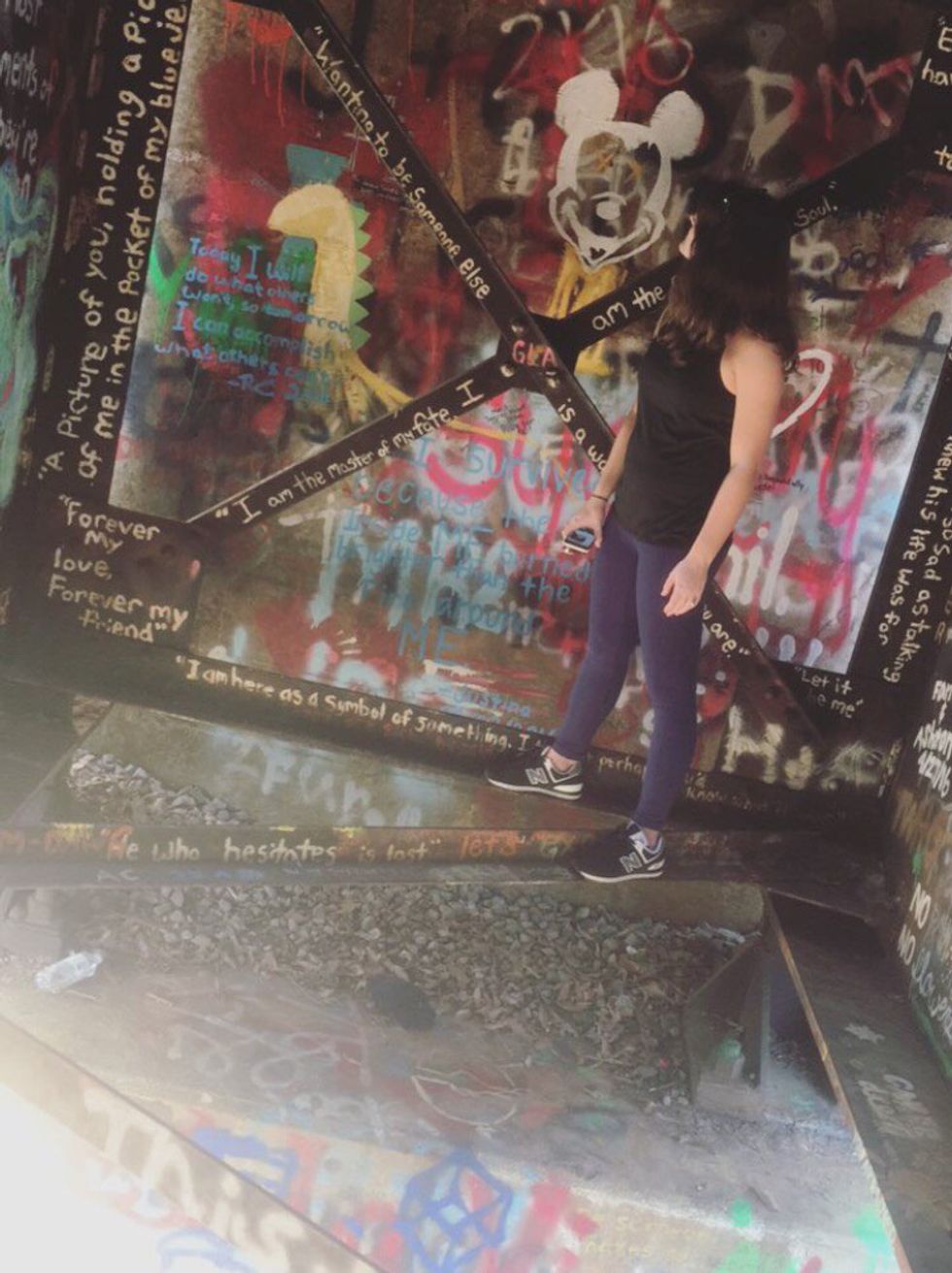 If you're feeling adventurous, walk down the railroad tracks by the dorms until you reach a bridge. Although it my look normal from above, if you crawl under the bridge you'll find amazing art and inspirational quotes. It's so fun to read the graffiti and it's a great place to take artsy pics.