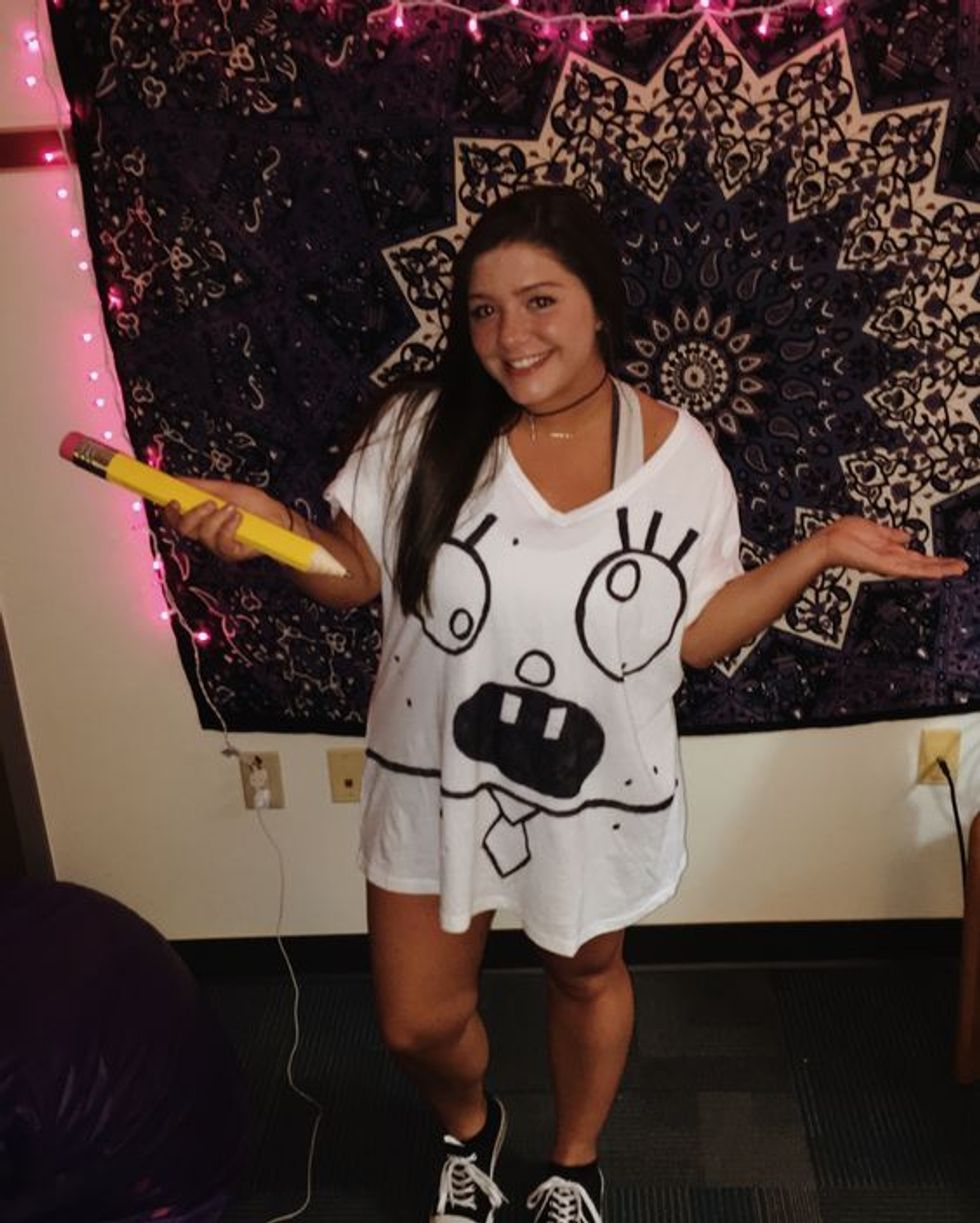 Try going as the iconic Doodlebob! All you need is a sharpie, a white tee shirt, and one very large pencil.