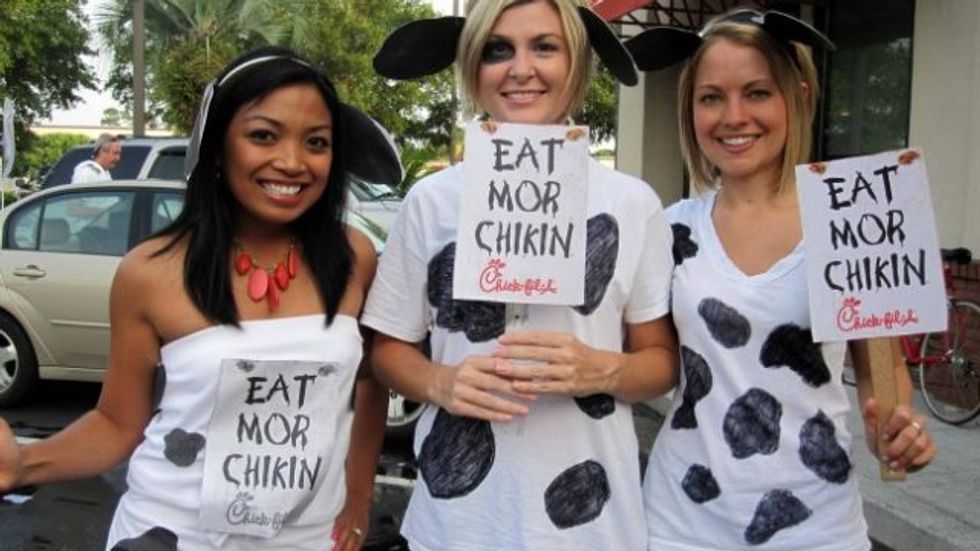 One of the easiest costumes on the list! All you need is a white tee shirt, a black marker, a red marker, and paper! It takes less time to put together than it does to go through the Chic-Fil-A drive through!