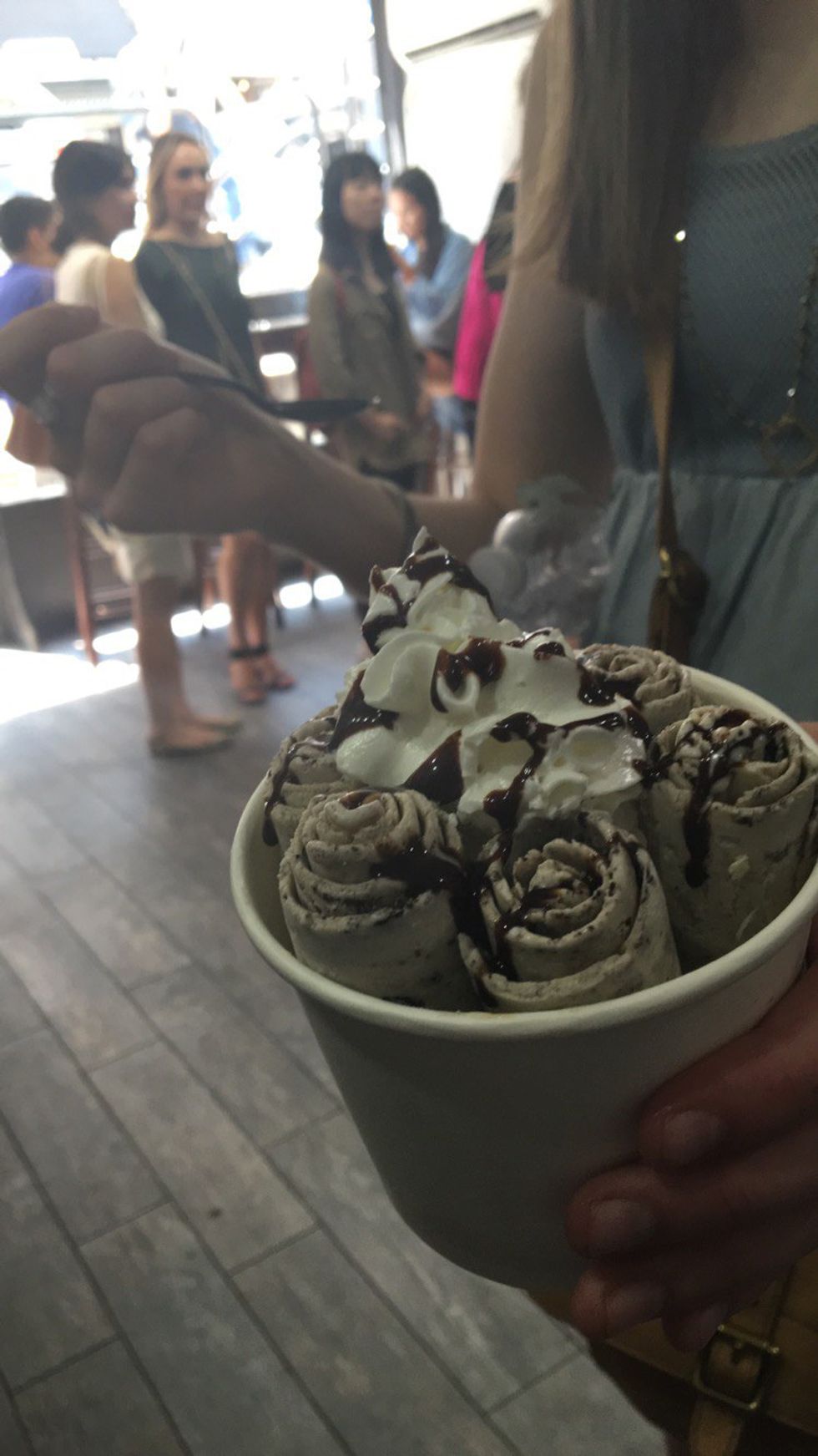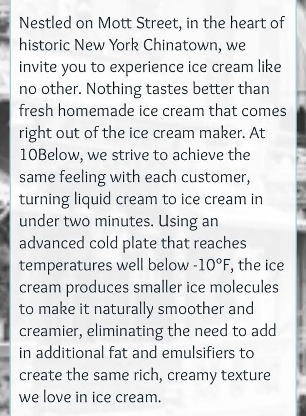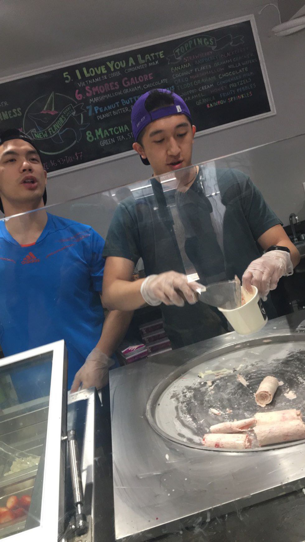 The 90-degree weather was starting to fatigue us, so we decided to exit Chinatown and head home. However, we only made it a few steps before a girl walked by holding a cup of some delicious-looking creation. When asked where she got it, she pointed directly to our left. A banner read "10Below Ice Cream." There was a descending staircase that would soon hold a line of people that extended down the block...and, based on its Instagram popularity, unsurprisingly so.