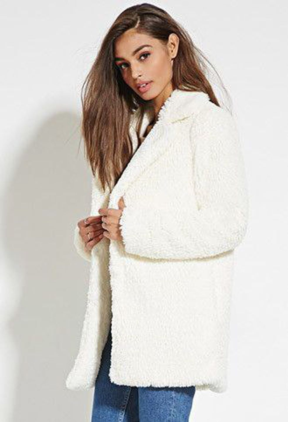 2. "Plush Car Coat" from Forever 21 $29.90. You can't go wrong with a plush coat! Like a black coat, this coat will match everything. However, by choosing a bright white color like the color of this coat, you're adding an aspect of light to your wardrobe that'll help you stand out this season.