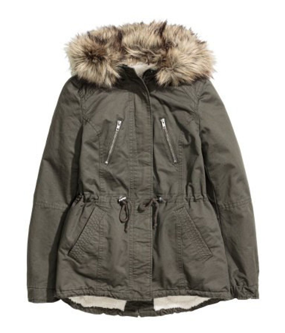 7. "Pile-Lined Parka" in khaki green from H&M $59.99. Because what does a better job of keeping you warm than a cozy parka?