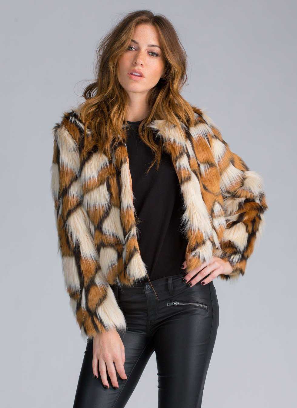 1. "Patch it Up Faux Fur Jacket" from GoJane $54. The trendy multi-color faux fur and mod silhouette of this jacket make it a winter must-have for keeping warm while staying stylish.