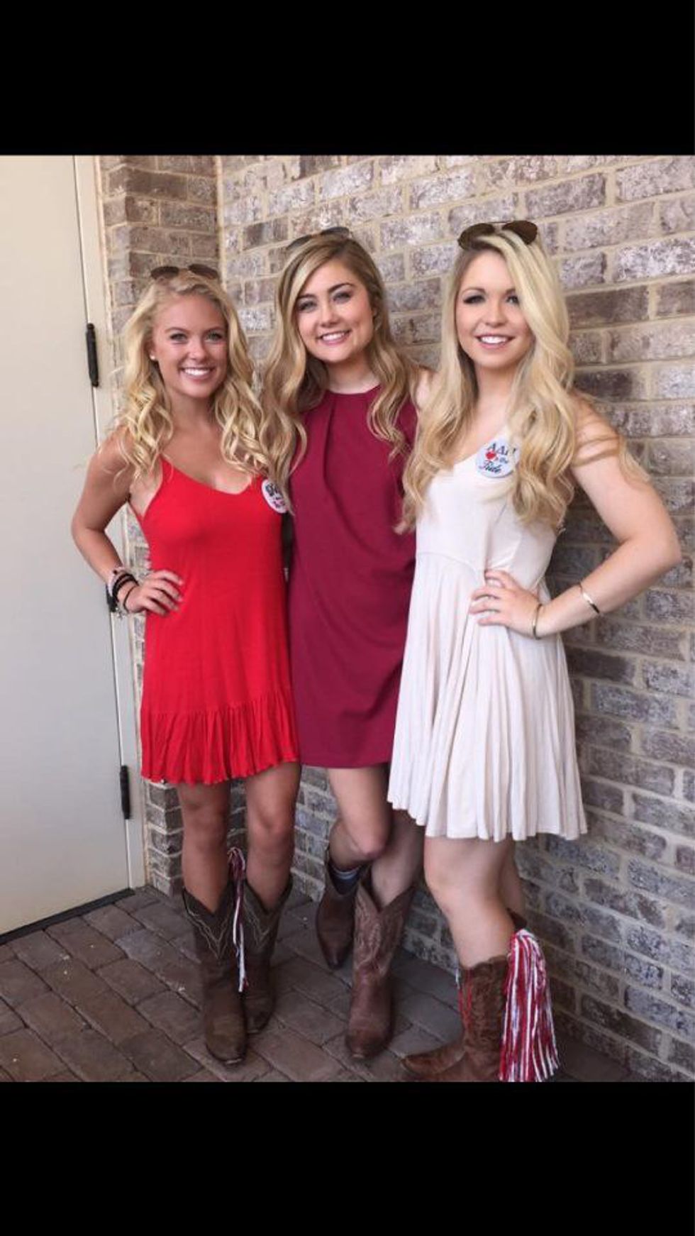 In Alabama, we go big or go home. For bigger, more important home games with a team rival , you’ll see girls decked out in sundresses of all styles: Black, crimson, white, prints -- nothing is off limits for a game day at UA!
