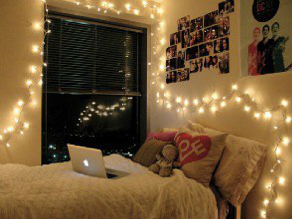 String lights may seem a little too feminine for some, but they actually enhance the atmosphere and warmth of your room. Plus, I knew some guys last year who got the blinking, colored ones to spunk things up, so it doesn't have to be frilly. If those aren't your style, go for some lamps just to eliminate the use of fluorescent lighting.