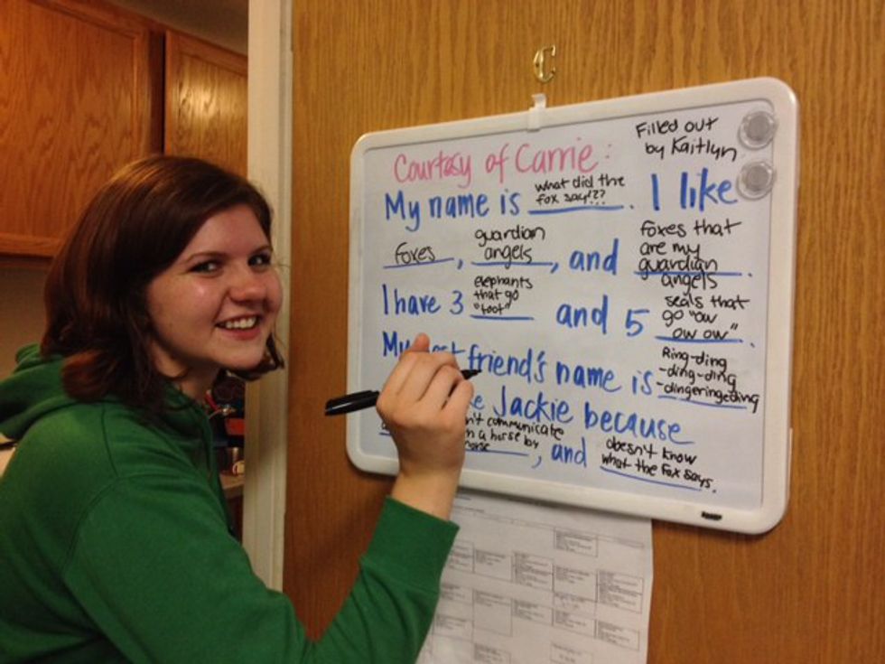 Look at how happy this random girl is because of her dorm room white board! I know. It's cheesy and slightly cliche but also awesome! My white board last year brought so many fond memories. Each morning I used to wake up to strange pickup lines or funny drawings. My entire floor would bond over how to surprise me and my roommate.