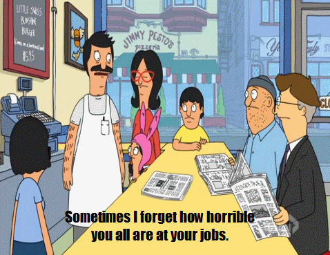 I could go on and explain in the depth about the one who takes their job too seriously, the manager that needs to get laid, or the vindictive bartender, but this is just a sample of the types of people you’ll meet in a restaurant. Being a server is not the most glamorous job and it’s often a stepping stone to a better full time job, but I guarantee you whether it’s a casual chain or a five star restaurant, these people will be there.