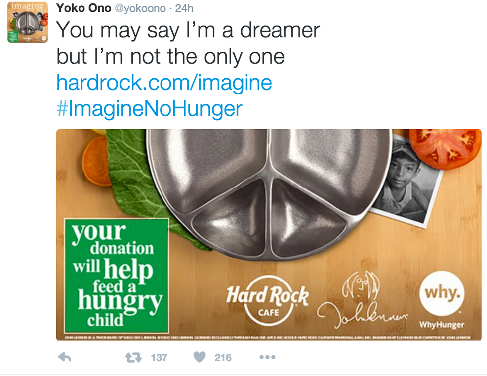 Yoko Ono is an influential peace activist and filmmaker. She posts artwork and gives us motivation to all live in more peace and harmony on this planet.
