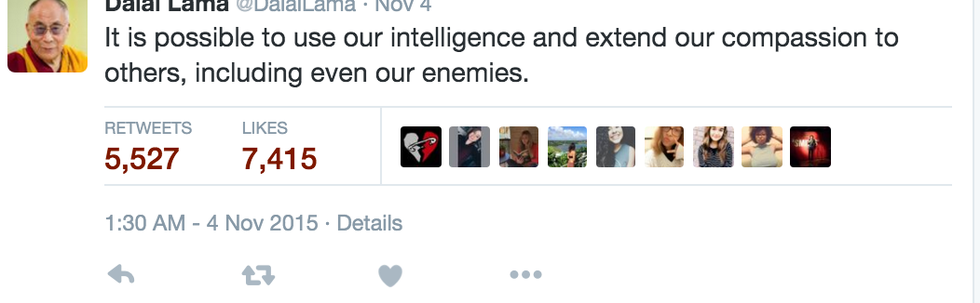 If you aren't already following the Dalai Lama, you need to immediately. He, of course, posts his own wisdom and quotes and his take on the issues that are happening in our world today.