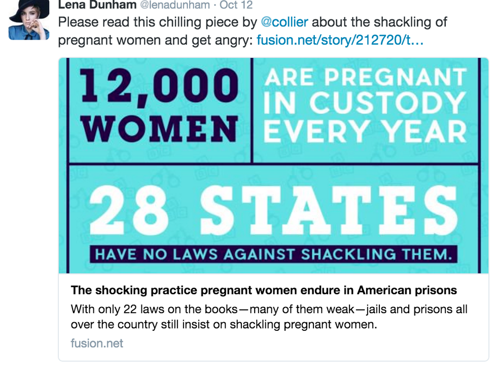 Lena Dunham is an actress, author, feminist and activist. She posts hilarious tweets about her life, but also shares a lot of news stories having to do with modern feminism.