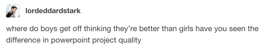 9. Girls are so nice. It seems like girls are always looking out for each other. Whenever I see a girl too sloppy at a party and I see her "mom" friend of the night come swoop in to save her, it makes me realize that there is good in the world. Have you ever walked into the women's room in a club? You'll probably find a bunch of girls taking selfies, giggling about how drunk they are and wobbling around in their heels. Have you seen guys in a club? Messy, probably trying to pick up women any way possible, and maybe pushing to fight someone.