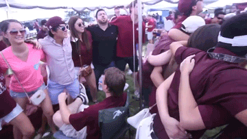 8. Con (?): Our friends beg to stay with us the night before a big game.