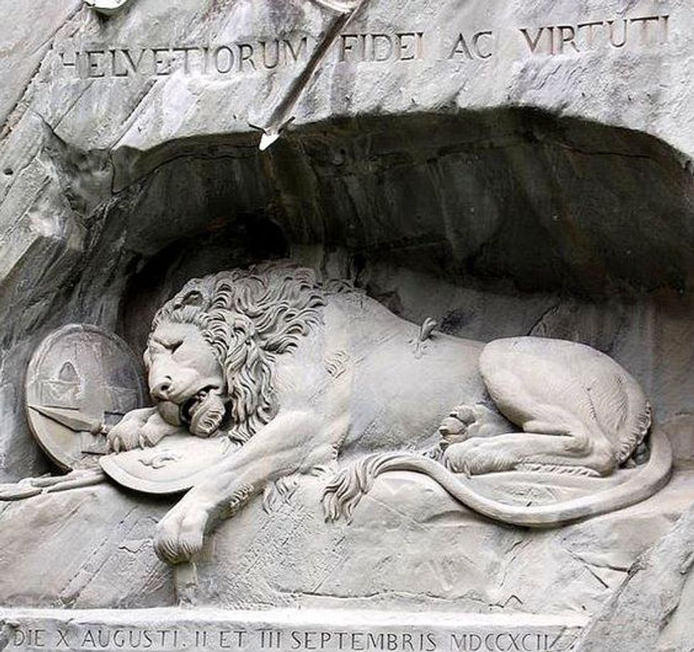 Pro Tip: If you find yourself in Lucerne, make sure that you see the Lion of Lucerne monument. Inaugurated in 1821, the sandstone carving represents a dying lion that commemorates the Swiss mercenary soldiers who lost their lives fighting in the French Revolution.