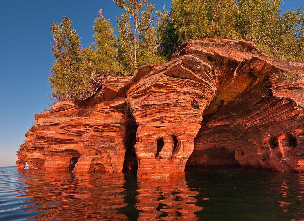 In Lake Superior, at the tip of Wisconsin are 21 islands and 12 miles of beaches and cliffs. Just a short drive from Duluth, Minnesota or even Minneapolis. In the winter, visitors can find the ice caves to wander through.