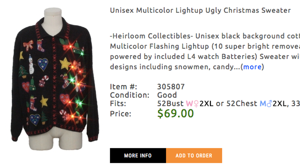 This website has sweaters that will make your grandma jealous. These aren't any old thrift-store find -- there is a variety of high-tech sweaters that light up!