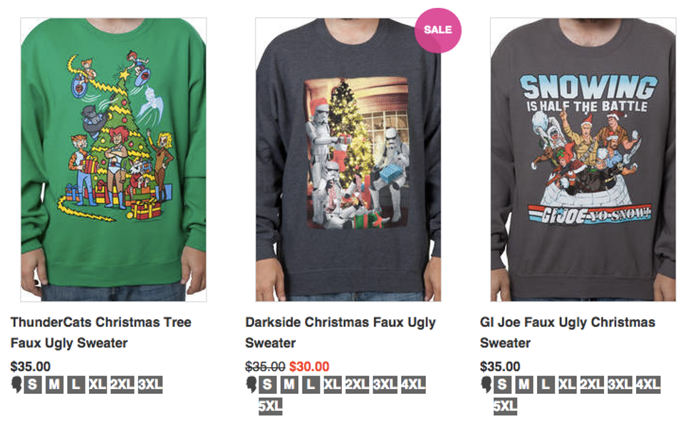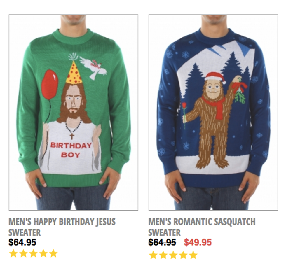 For lack of a better term, these sweaters are simply weird. This website is filled with diverse and slightly offensive sweaters that are sure to create conversation at any Christmas gathering.