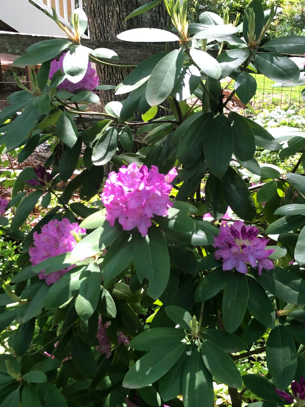 I love flowers that bunch together in such a way that they look like one big flower. The way rhododendrons extend out and up make it look like they are presenting passerbys with bouquets.