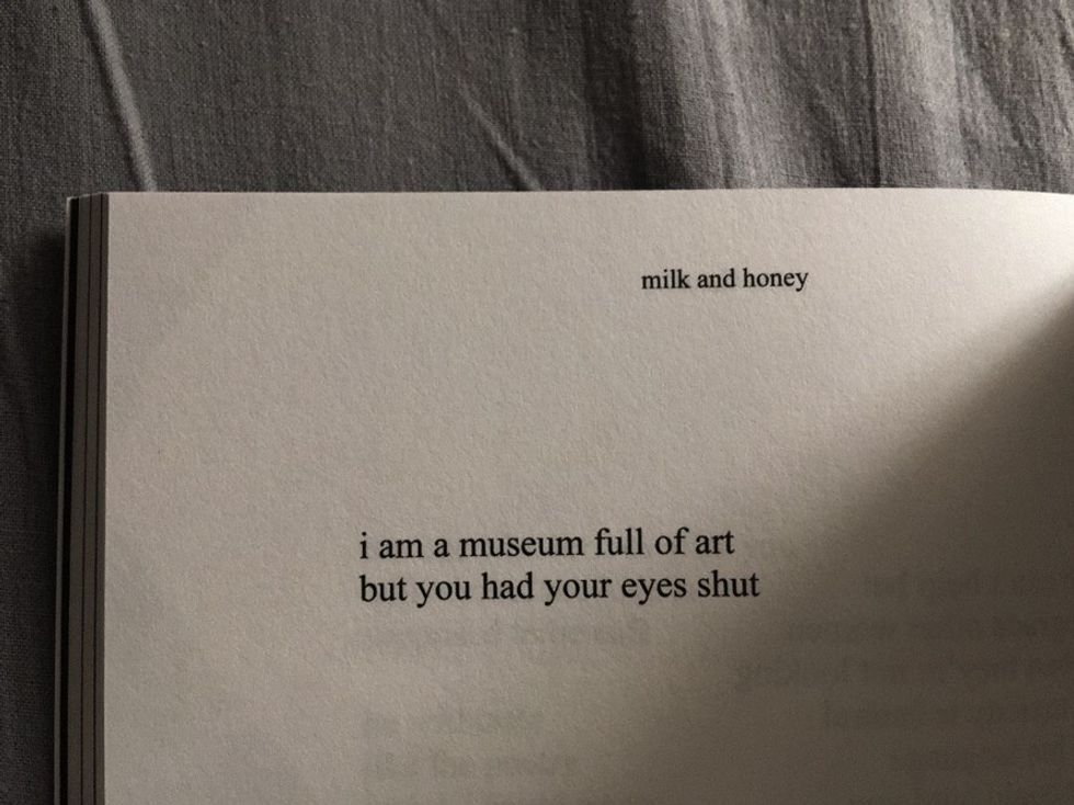 Rupi's Kaur's Milk and Honey discusses many important issues about being human. Her poems capture themes of hurting, loving, breaking and healing. Any young woman needs Milk and Honey in her life. Here are some of my all-time favorite poems of hers.