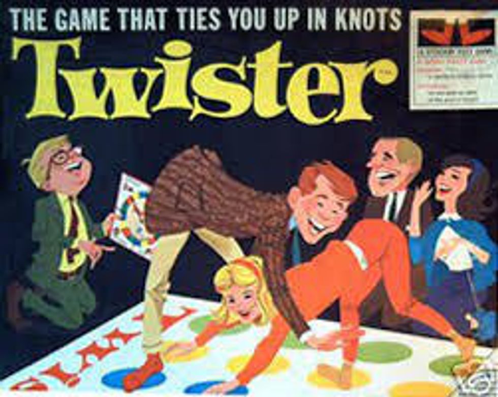 Put your right hand on green. Now put your left foot on yellow. Next move your right foot to red. Oops, that spot’s taken – move again! Right hand on blue! Don’t fall! You have to have excellent coordination and even better balance to be a winner at Twister. The same goes for the game of college. If you can't balance all your activities, schoolwork, and social life, you'll probably end up laying face-first on the floor just like when your right hand slips off blue. College is “the game that ties you up into knots!”