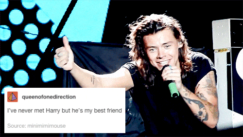 Harry is everyone's best friend. When he is on stage, he makes you feel welcomed, and if you meet him on the streets, it is like you are visiting with a friend. He is so warm and nice, so it is no wonder that One Direction fans feel so close to him, even when they do not personally know him.