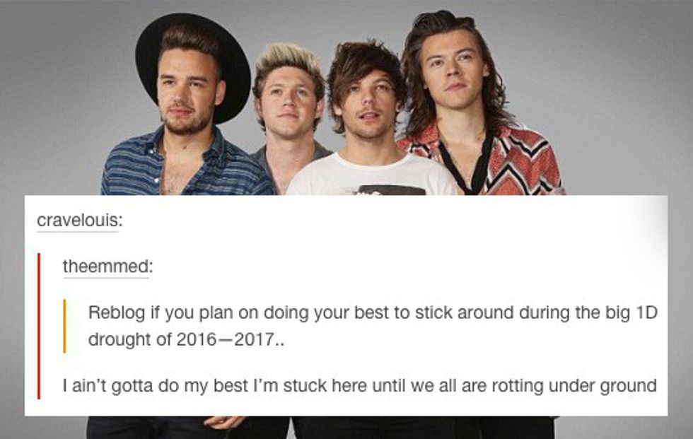 Being a fan of One Direction also means tears. However, a good Tumblr post seems to sum up what it is like being highly dedicated to these four boys, and here are some that prove it.