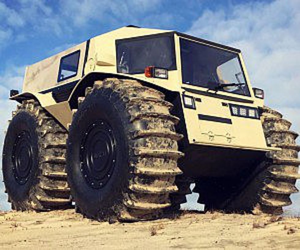 Who doesn't need an ATV that can crush small homes? This Hulk sized "toy" is clearly what will be in everyone's garage next year at only $49,000. (http://sherp.ru/en/sherp/)