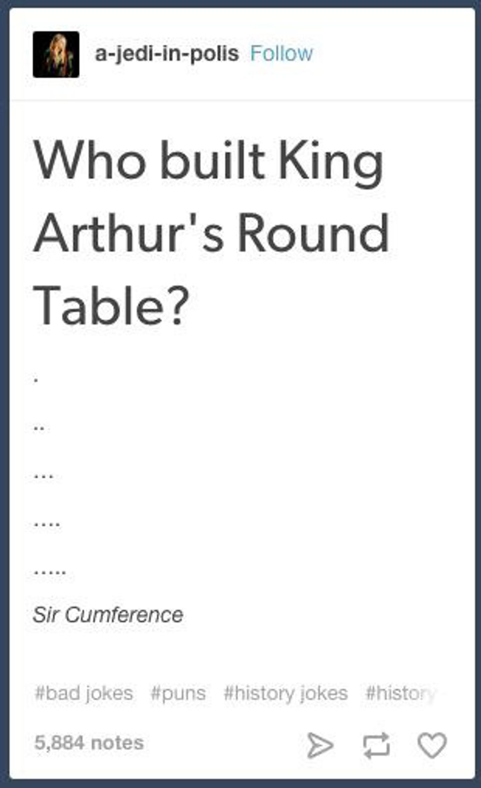 These jokes are horrible. But hey, you just might grow to like them. And isn't that awful? Just you wait. And if you ever reach this point, or find yourself missing your professors' awful jokes, this list will be here.