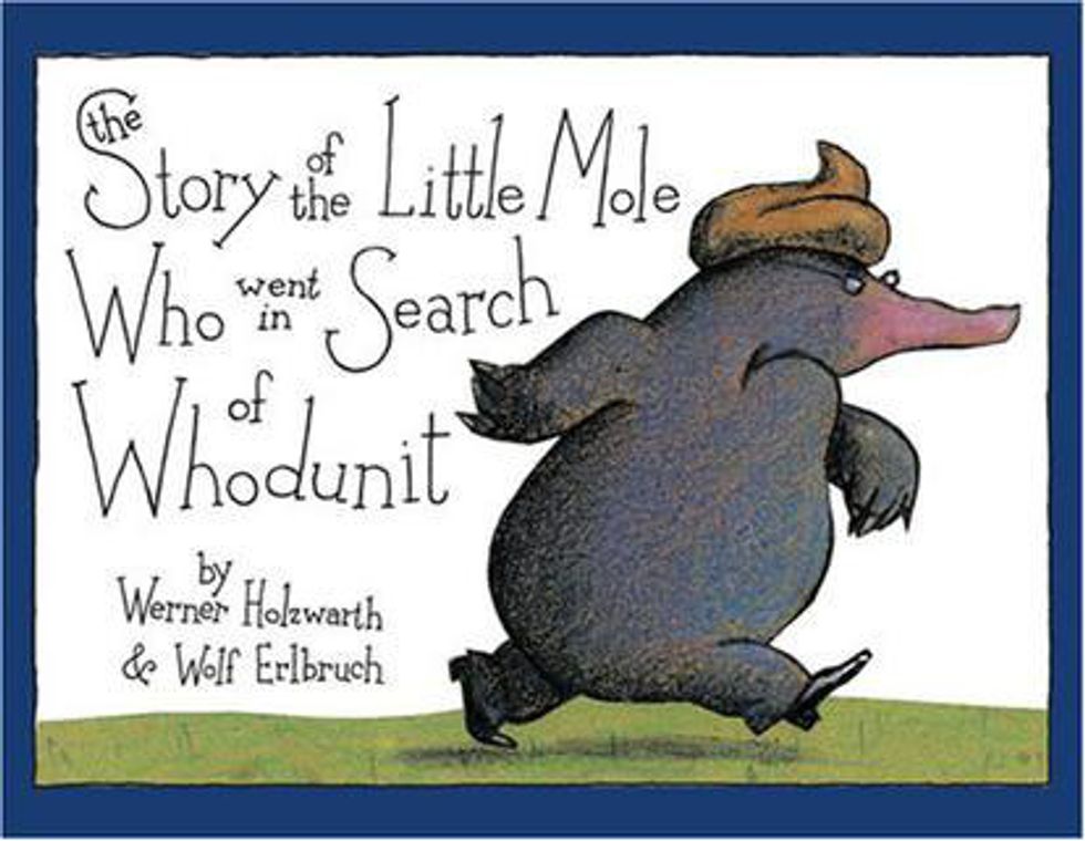 Yes, you did see the picture correctly. This is a children's book about a mole who got pooped on and then attempts to solve the mystery of who did it. Quirky, indeed.