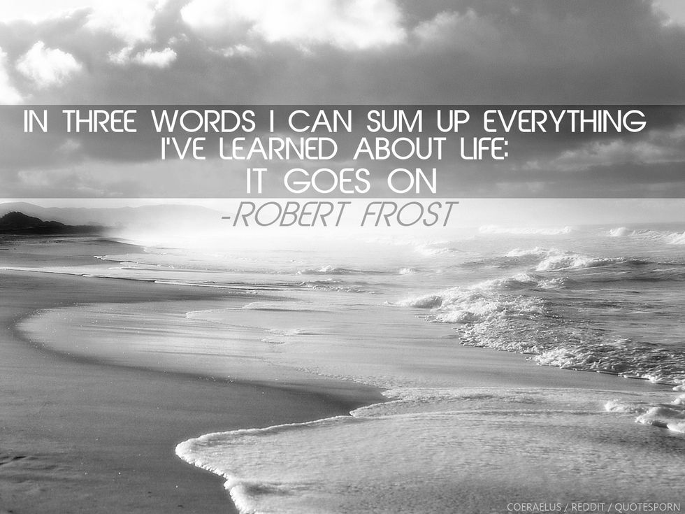 3.) "In three words I can sum up everything I've learned about life: it goes on."