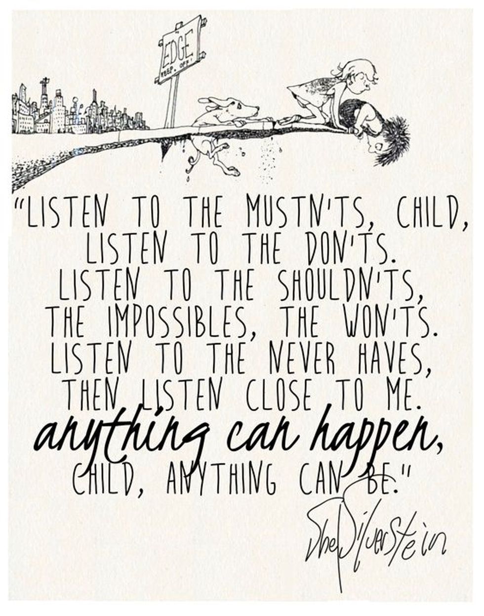 8.) "Listen to the mustn'ts child, listen to the don'ts, listen to the shouldn'ts, the impossibles, the won'ts. Listen to the never haves, then listen close to me- anything can happen child, anything can be." (This is one of my all time favorites.)