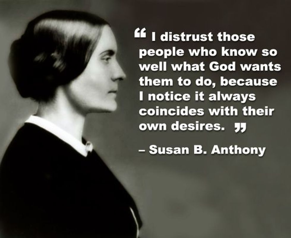 3. "I distrust those people who know so well what God wants them to do, because I notice it always coincides with their own desires." - Susan B. Anthony
