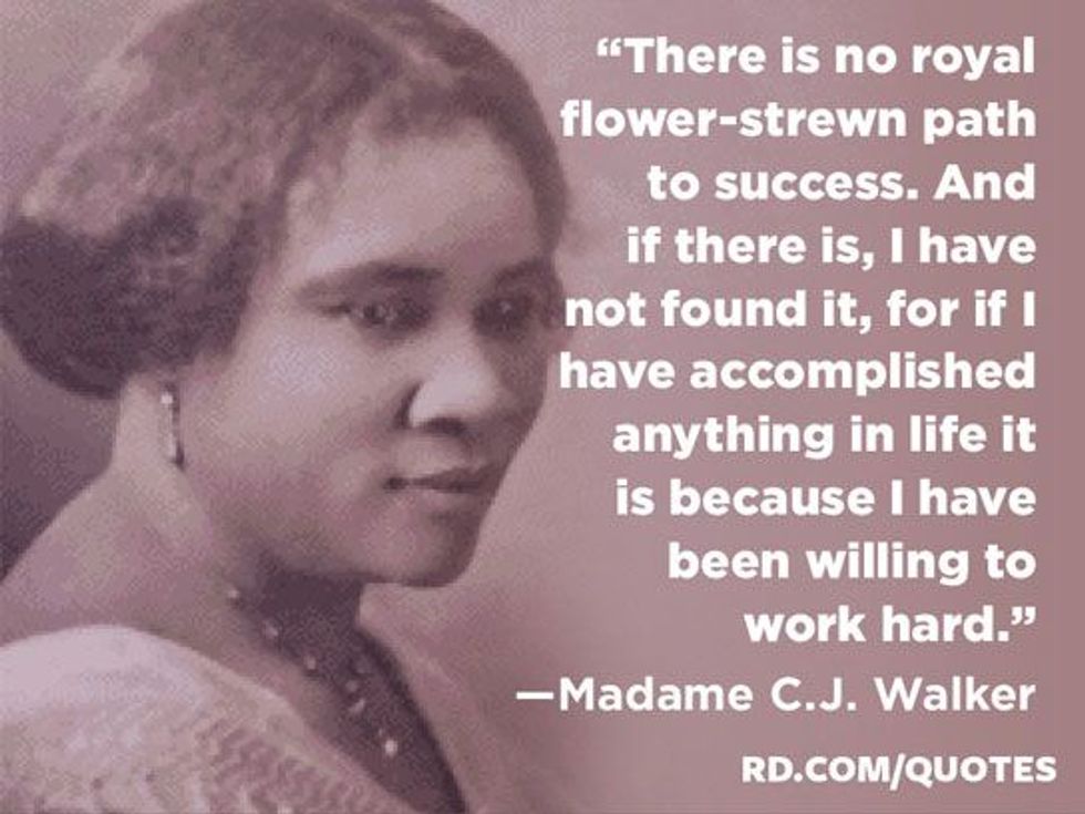 4. "There is no royal flower-strewn path to success. And if there is, I have not found it, for if I have accomplished anything in life it is because I have been willing to work hard." - Madame C. J. Walker
