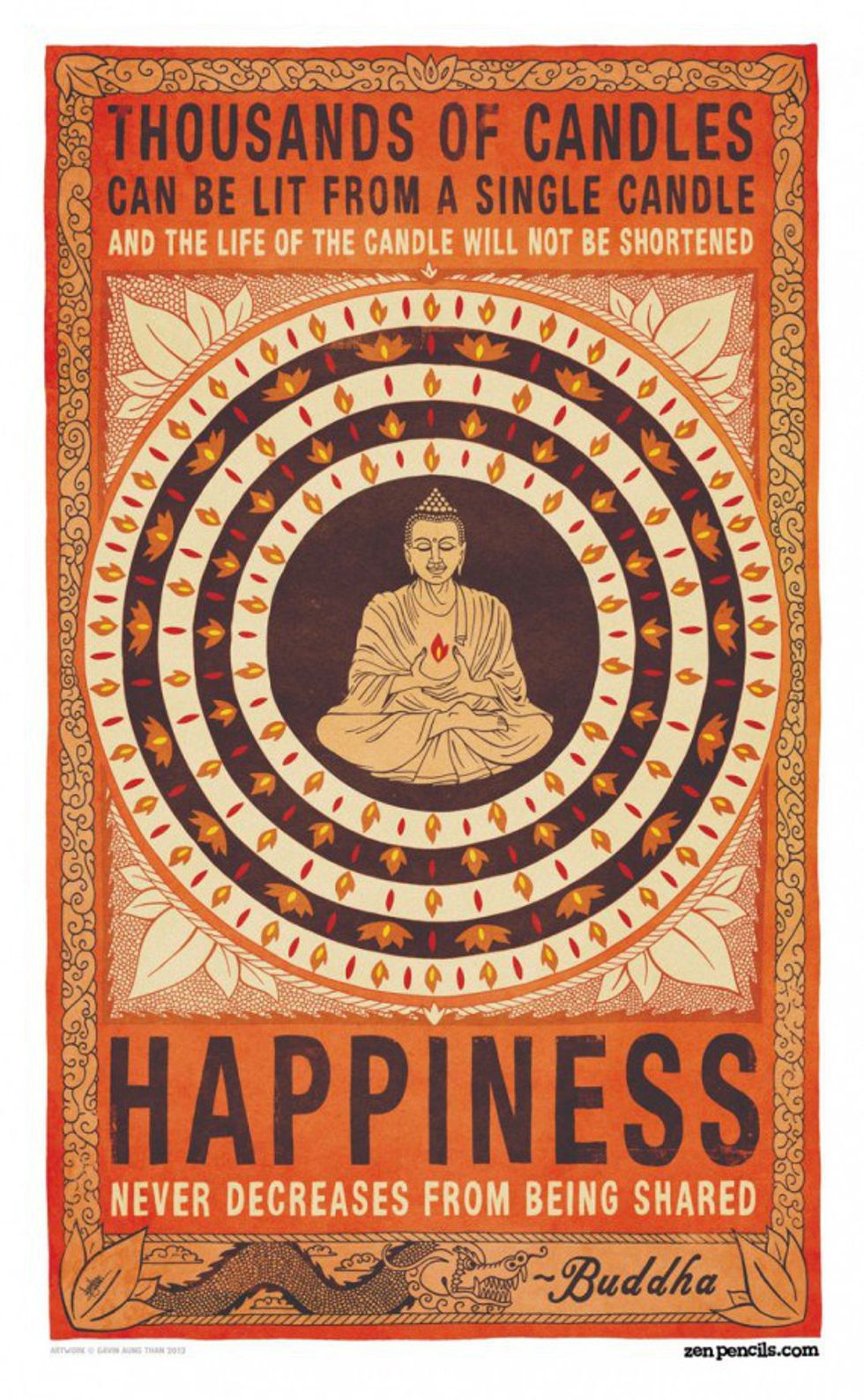 - "Thousands of candles can be lit from a single candle and the life of the candle will not be shortened. Happiness never decreases from being shared." --Buddha